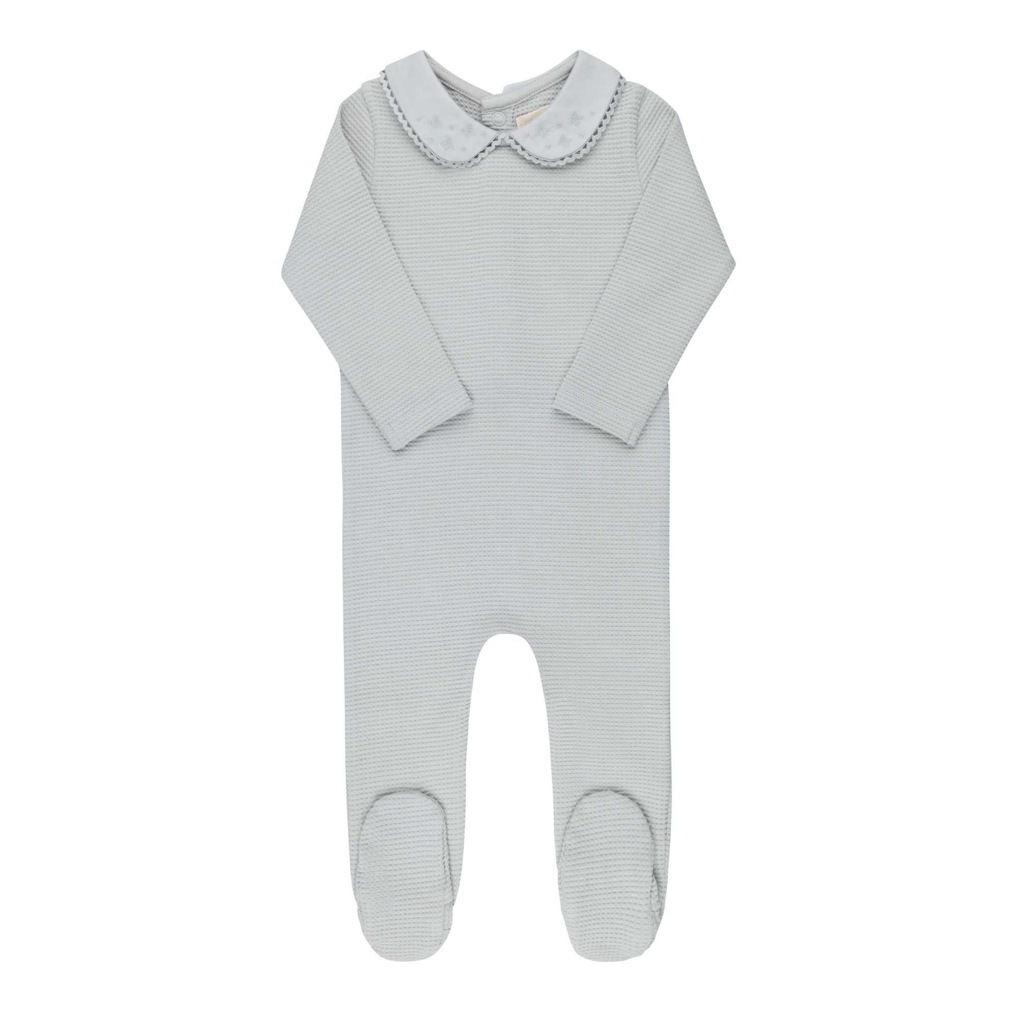 Embroidered collar collection - Footie and bonnet - Blue