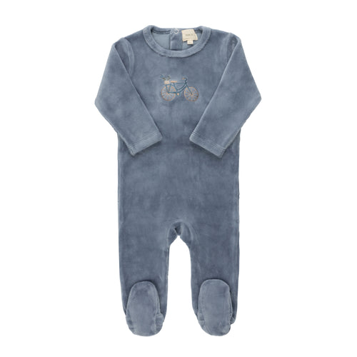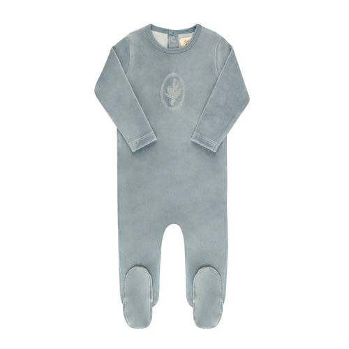 Velour leaf pattern collection - Footie and bonnet - Blue