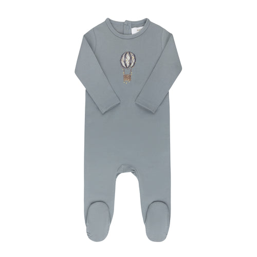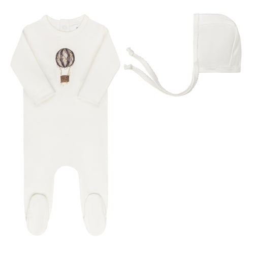 French terry hot air balloon collection footie and bonnet - Ivory/Blue