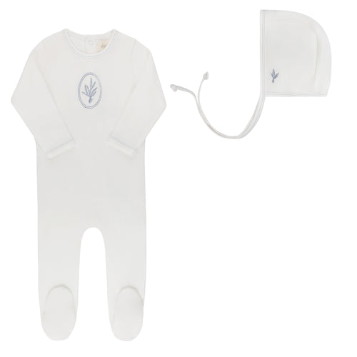 Velour center floral collection - Footie and bonnet - Ivory/blue
