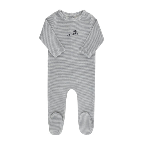 Velour stripe collection - Footie - Dark blue