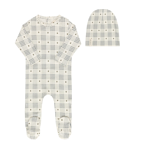 Floral plaid collection - Footie and beanie - Ivory/blue