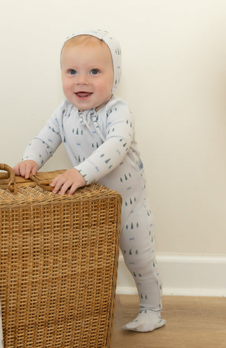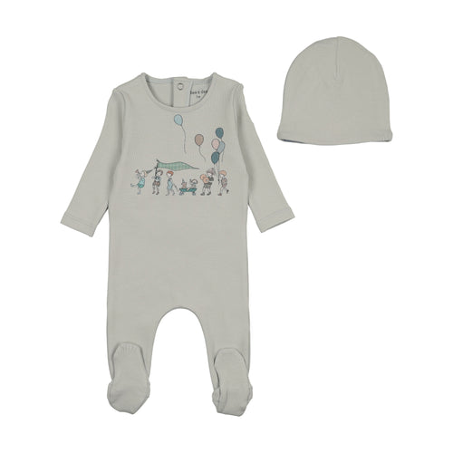 Little tot parade footie and bonnet - Blue mist