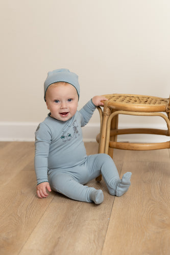 Promenade footie and beanie - Blue fog