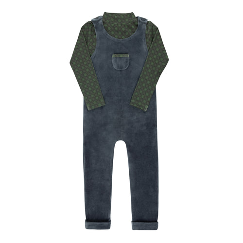 Velour plaid bear collection - Overalls and turtleneck - Blue