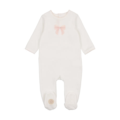 Velour embroidered cherry footie and bonnet - pale pink/red cherry