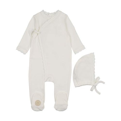 Embroidered duck footie, bonnet and bib - Winter white/pink duck