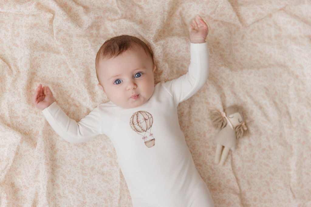 French terry hot air balloon collection footie and bonnet - Ivory/Pink