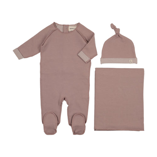 French terry top stitched layette set - Mauve pink melange