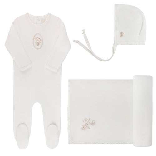 Velour center floral collection - layette set - Ivory/rosegold3m