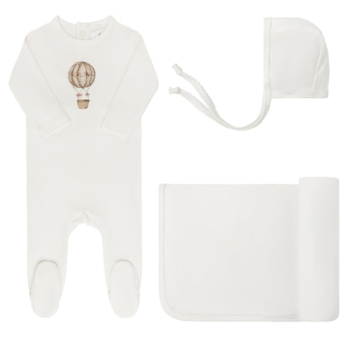 French terry hot air balloon collection layette set - Ivory/Pink3m