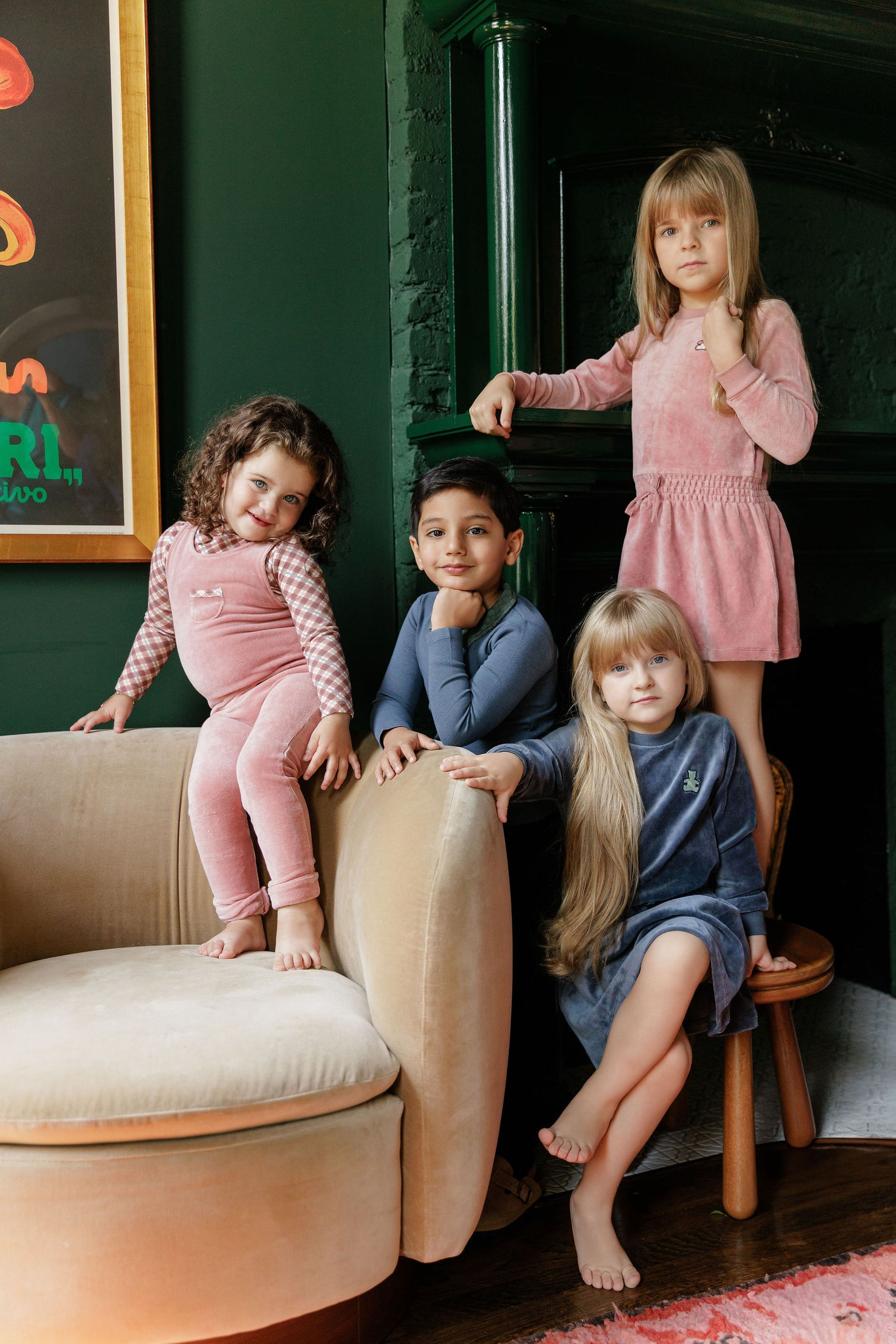 Velour plaid bear collection - Overalls and turtleneck - Pink