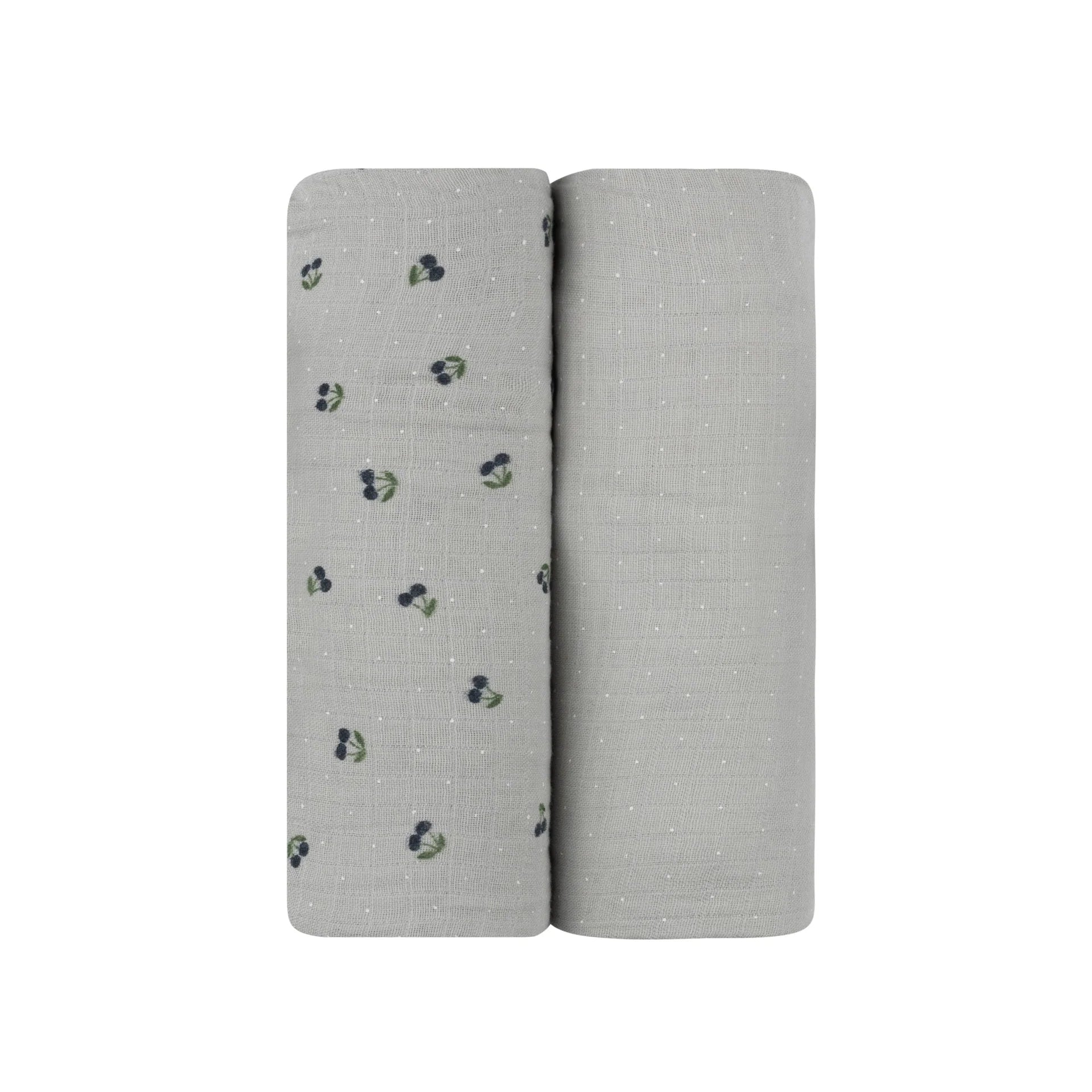 2 Pack Cherry Print Collection - Muslin Swaddle - Blue