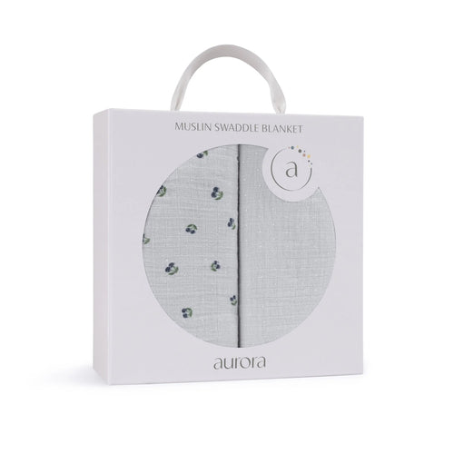 2 Pack Cherry Print Collection - Muslin Swaddle - Blue