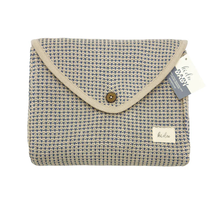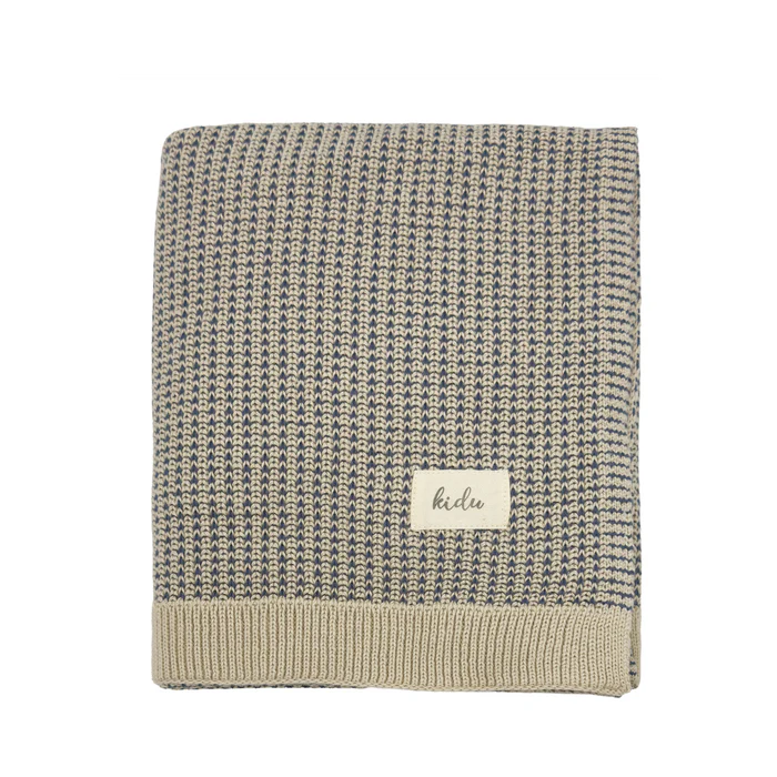 100% Organic Cotton Knitted Blue Baby Blanket and Bunny Set